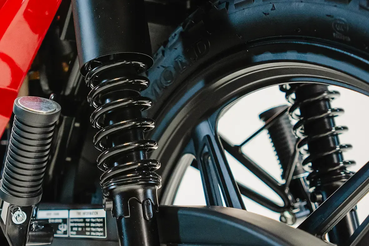 Na parte dianteira, a FREE conta com garfo telescópico, melhorando a aderência dos pneus ao solo, ideal para terrenos irregulares. Já na parte traseira, a suspensão é convencional (dois amortecedores) garantindo uma maior estabilidade. Um conjunto que une tecnologia e conforto, ideal para aventuras e trajetos desafiadores.