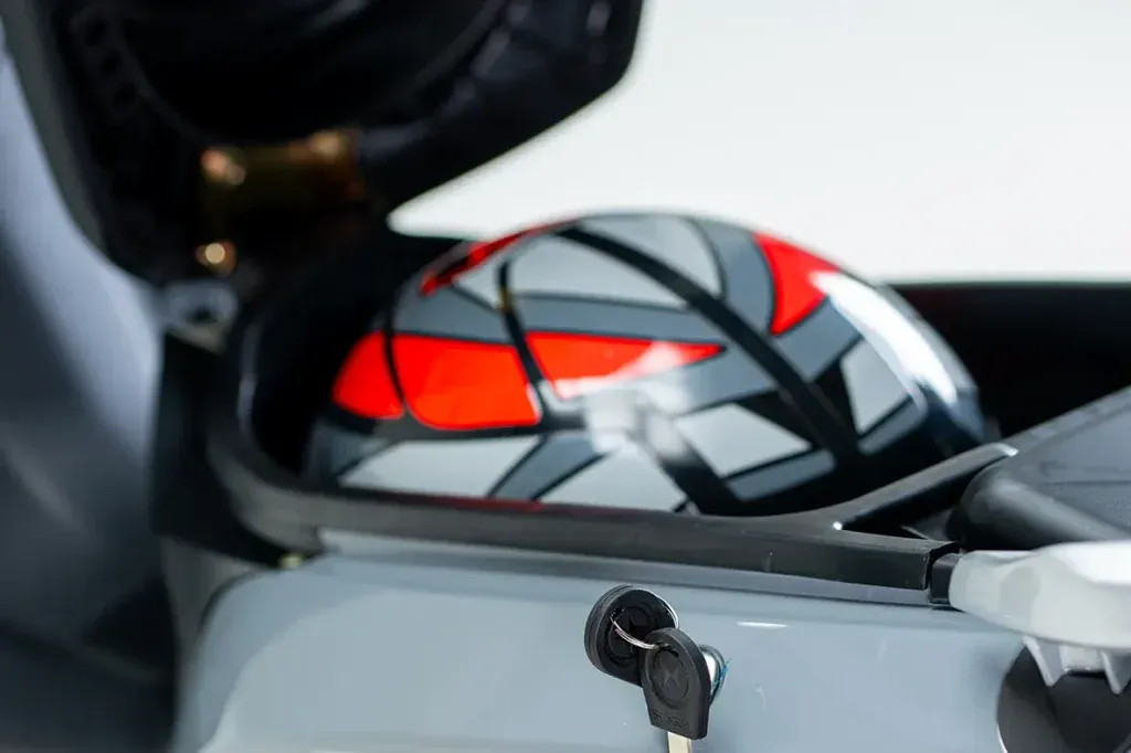 O guarda volumes da JET 125ss oferece espaço suficiente para itens essenciais, como documentos, chaveiros, objetos pessoais e até mesmo um capacete. A capacidade do guarda-volumes é ideal para quem precisa de praticidade, permitindo que o motociclista armazene itens com segurança durante seus deslocamentos.